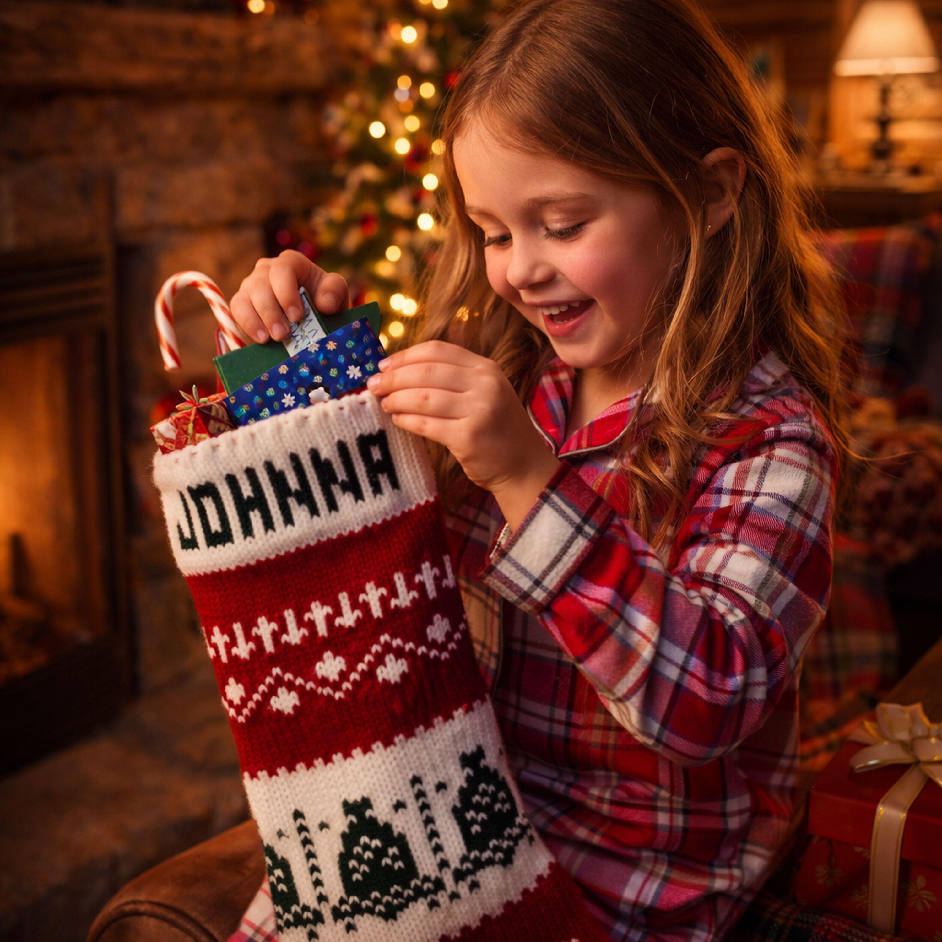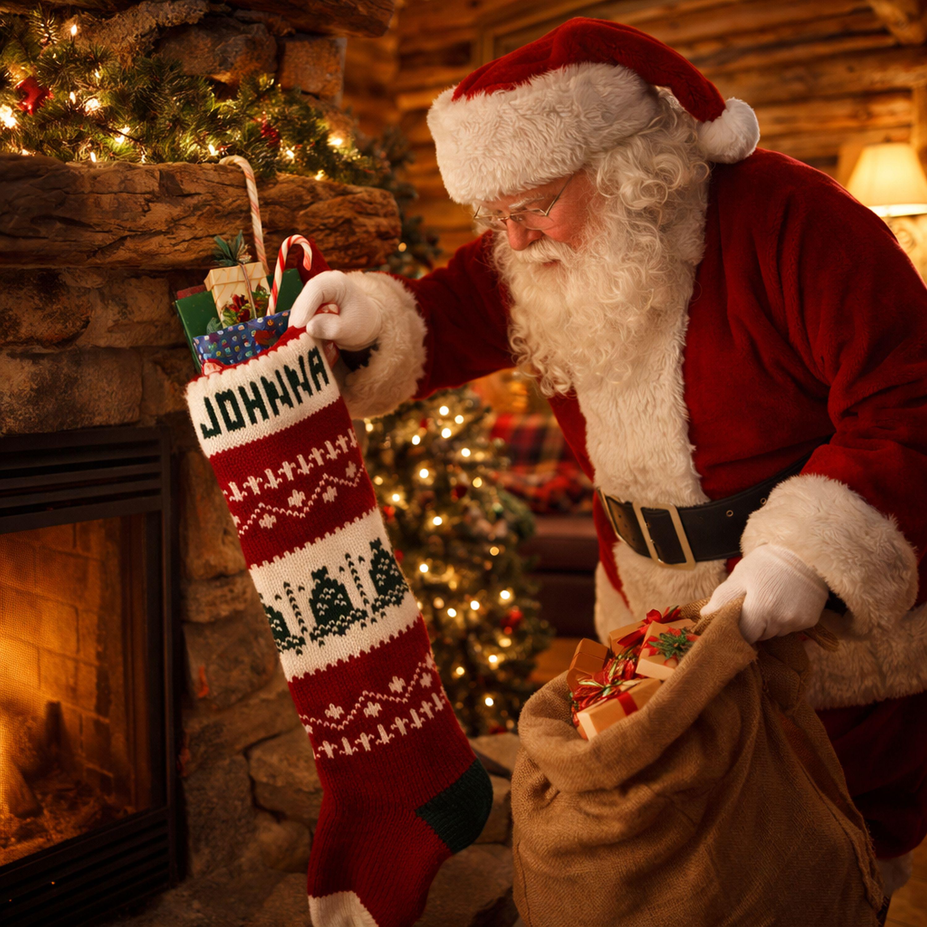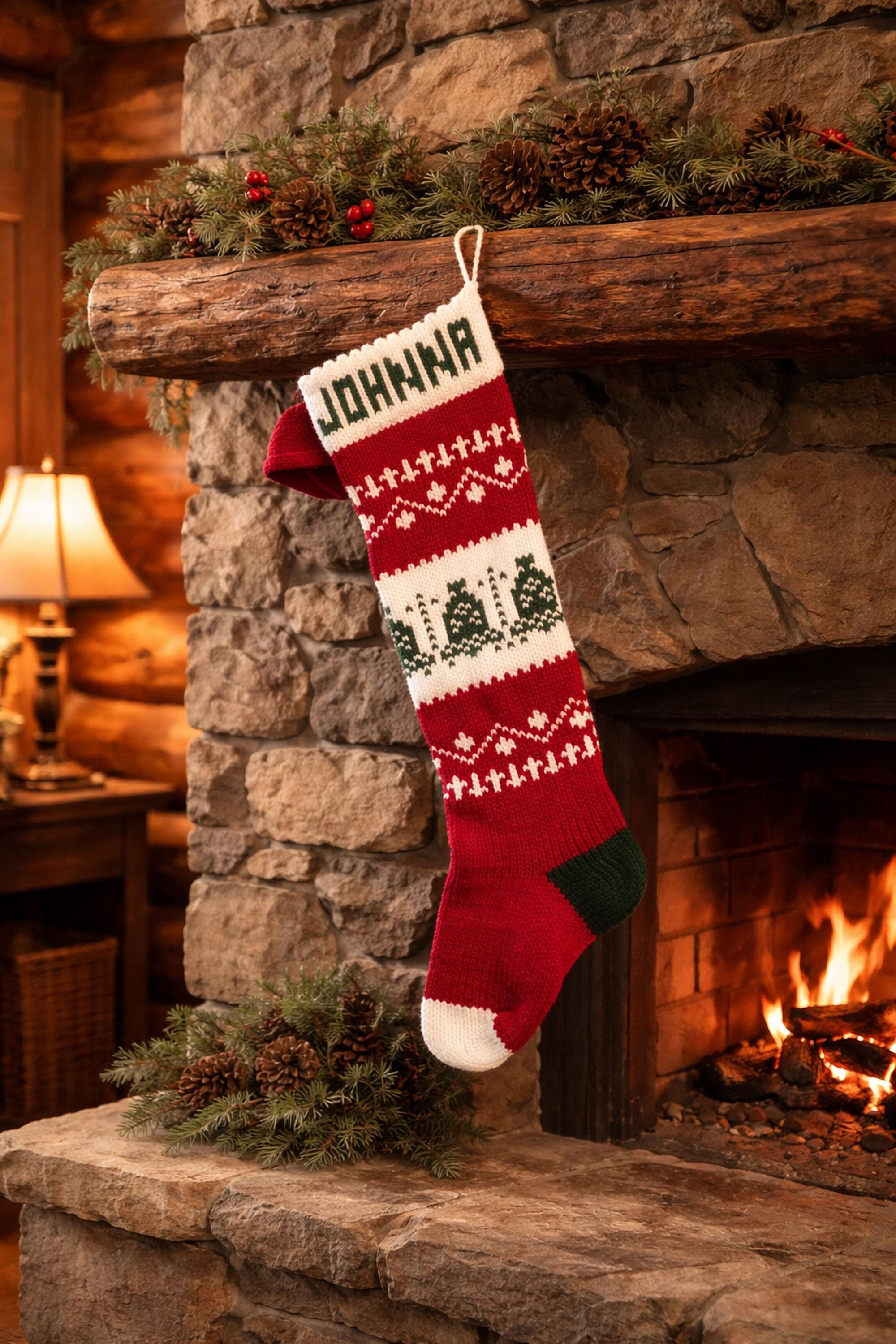 These have been extremely popular, and we love doing them. The price on this item is for one beautifully hand loomed Christmas stocking, personalized with the name of your choice, knitted in the cuff , which we will begin upon receipt of payment and pattern choice.