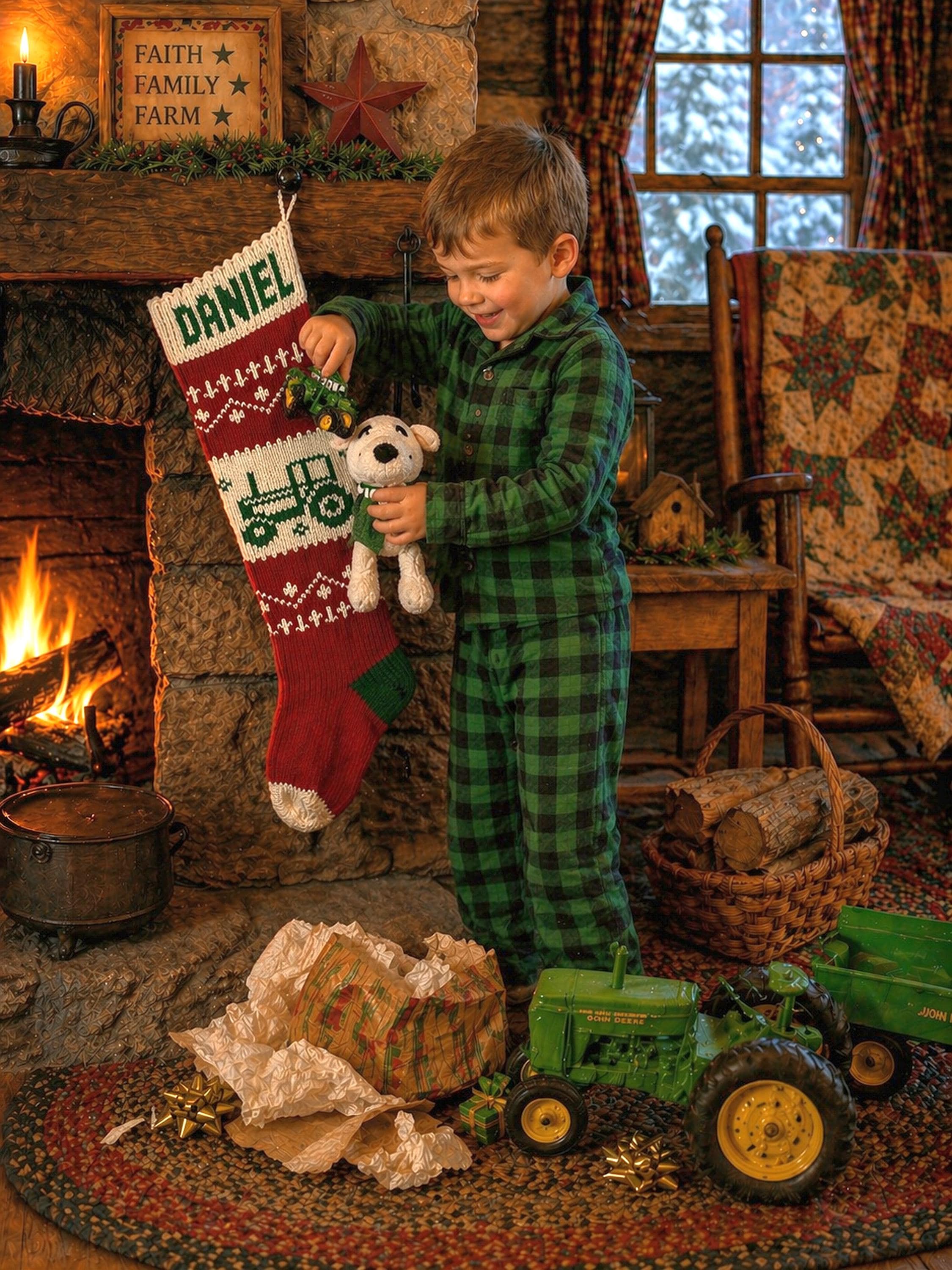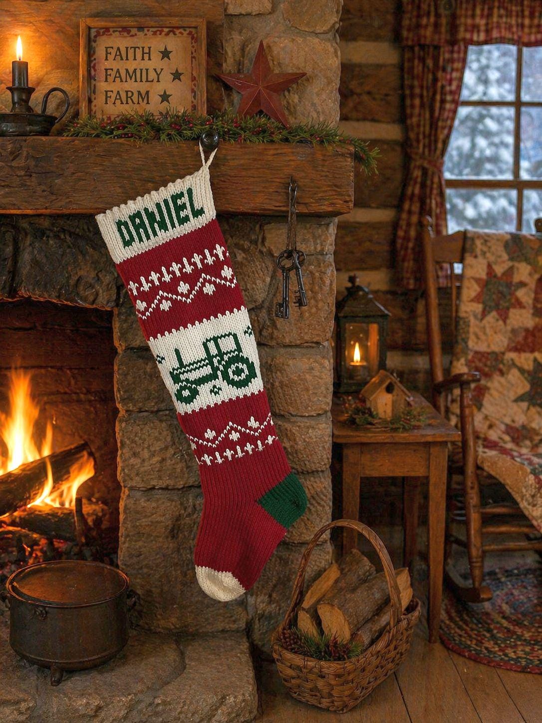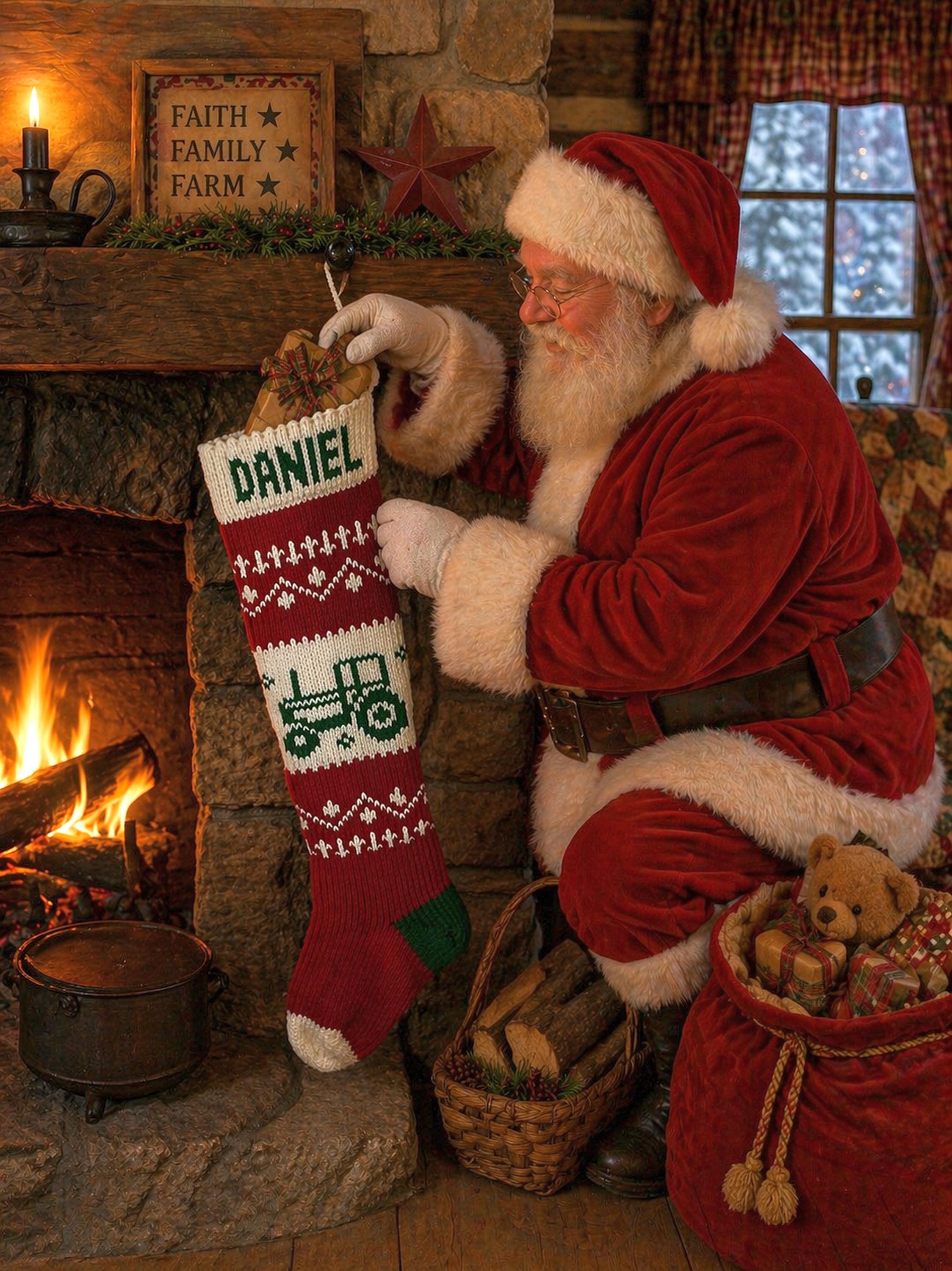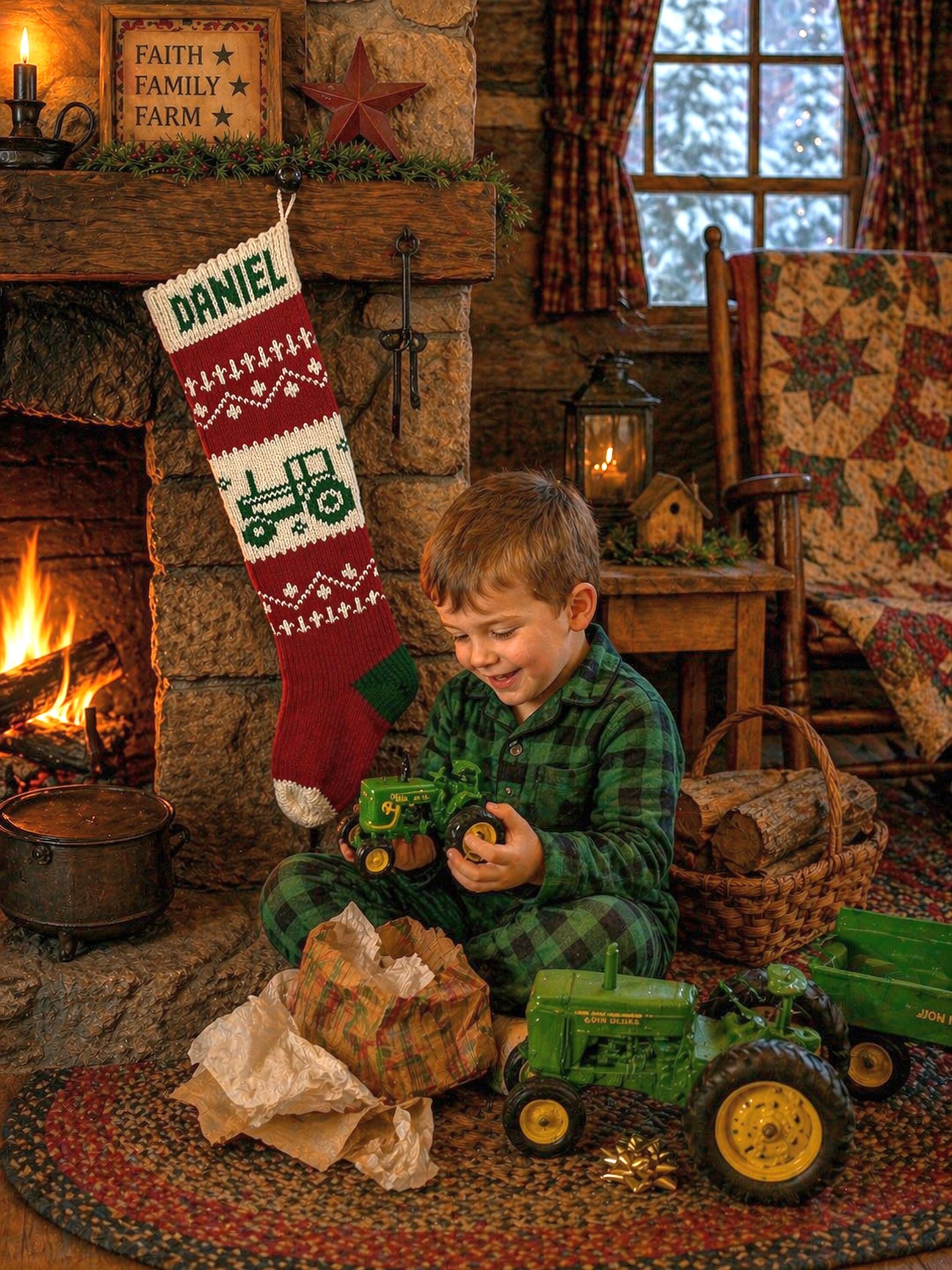 Pictured is our Tractor stocking which had a knitting lining.